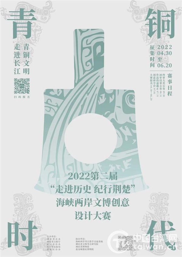 据介绍,本次大赛由湖北省台办、湖北省文旅厅、武汉市台办、武汉市文旅局、黄陂区台办主办,海峡两岸考古教学交流基地、湖北省文物考古研究院、湖北省博物馆、盘龙城遗址博物院协办。大赛于4月底启动招募,6月底截止报名,9月底公布获奖结果。赛程中将融入创意研学营等特色内容并面向公众开放,在推动创意设计与历史文化有机结合的同时,为广大群众提供了解荆楚历史文化的平台。