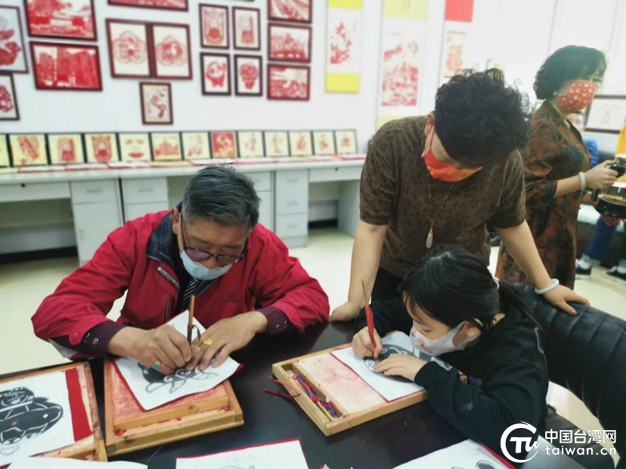 日前,天津东丽区台办在军祥园社区党群服务中心大郑剪纸展厅举办“观摩剪纸功夫 品鉴传统文化”活动。(图片来源:天津市台办)
