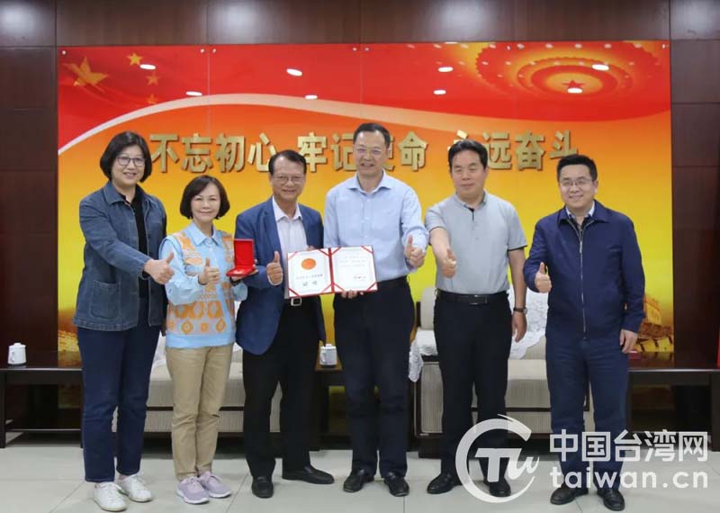 中国台湾网5月20日讯 近日,天津市委台办领导班子与获得2022年天津市五一劳动奖章的在津台胞陈文德先生进行座谈,并现场颁发了奖章及证书。