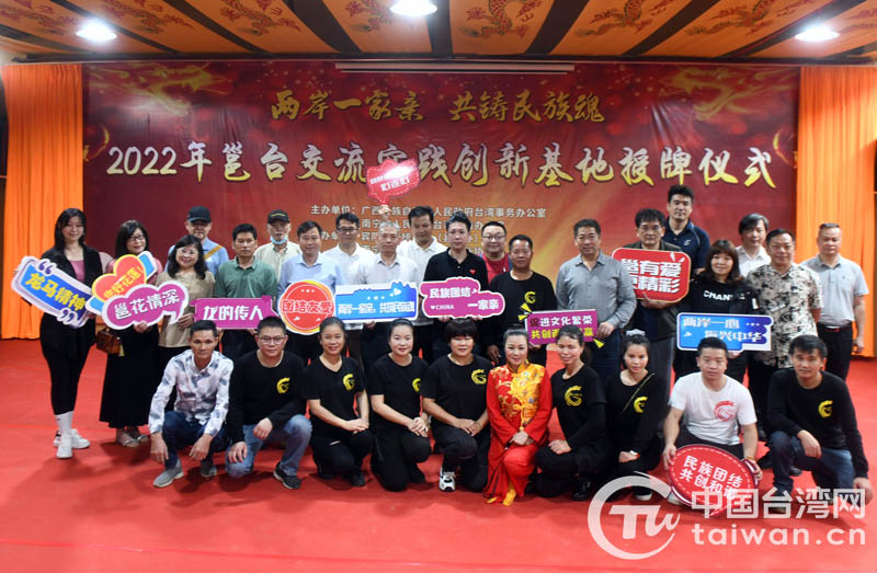 中国台湾网5月26日讯 5月25日,邕台交流实践创新基地授牌仪式暨“两岸一家亲 共铸民族魂”座谈会在广西南宁市宾阳县万兴炮龙文化园内举行,广西台办、南宁市台办、南宁市宾阳县台办相关负责人和南宁市台商、台青、台师代表参与本次活动。