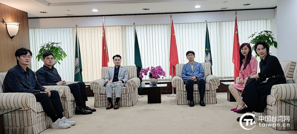 中国台湾网6月1日讯 CSI集团董事郑晓松、横琴粤澳文化创意协会副会长林芯泽、粤港澳大湾区电子体育协会秘书长吴纪儒、澳门中葡演艺文化协会副秘书长陈家浑、台商澳门丁旺婚庆旅游产业有限公司董事长树姵蓉等一行,日前到访海峡两岸关系协会驻澳门办事处。双方深入交流澳台双方在文创产业合作议题。