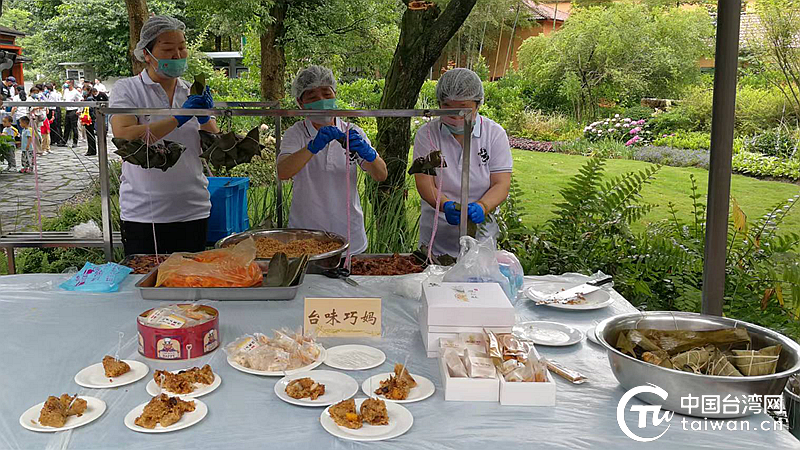现场嘉宾体验粽子美食。(中国台湾网发)
