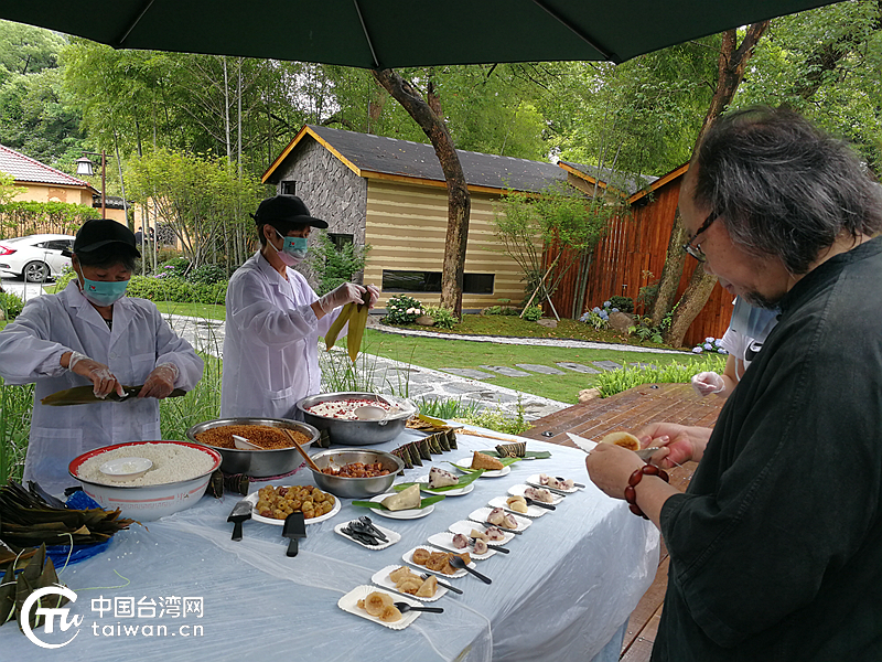 入驻园区的“台味巧妈”与黄公望村“公望女管家”们开展了一场别开生面的端午包粽子趣味大比拼。(中国台湾网发)