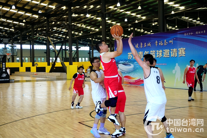 中国台湾网6月21日讯 6月19日,“健康名城 幸福泰州”苏台青年篮球邀请赛在江苏省泰州市成功举办。由10多位泰州本地篮球爱好者组成的“祥泰之州”队和由20多位来自苏州、常州、镇江、扬州、泰州、连云港、盐城等地的台湾青年组成的“江苏台青”队之间展开角逐。