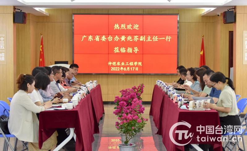 中国台湾网6月23日讯 近日,广东省委台办副主任、一级巡视员黄兆芬和广东省海峡两岸交流促进会农委会会长陈宏钦一行拜访仲恺农业工程学院并进行调研。