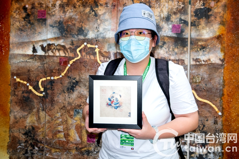 在阿坝师范学院、水磨古镇,两岸学子在藏纸研究中心打卡藏纸文化,学习锅庄舞,品尝少数民族传统食物,深层次体验少数民族文化魅力,感受川西地区独特的自然风光与深厚的历史底蕴。喜欢绘画的成都中医药大学的台湾学生鲁芸嘉用毛笔晕染出手举五星红旗的彩色“国宝”。在纸面的留白处,她写了“湾仔”两字为大熊猫命名,并把自己初次藏纸手绘作品装裱起来,准备带回家留作纪念。