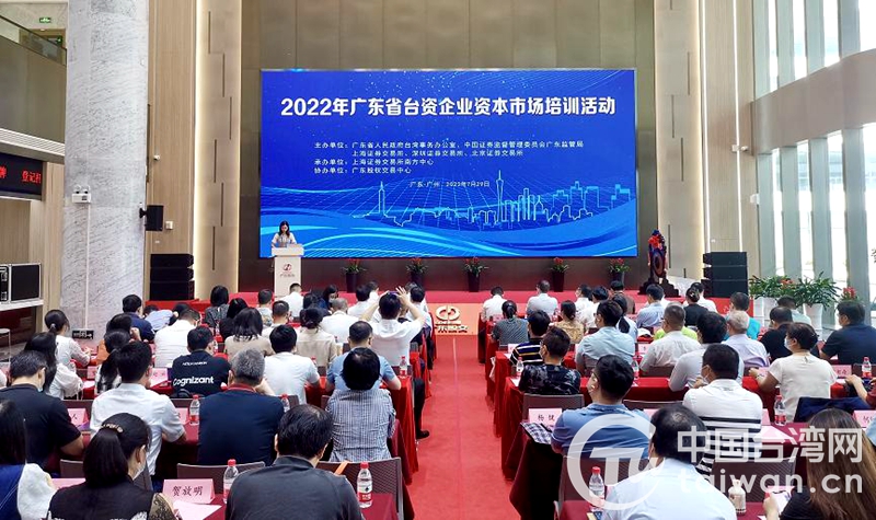 中国台湾网7月29日讯 今日,由广东省政府台办、广东证监局、上海证券交易所、深圳证券交易所、北京证券交易所联合主办的2022年广东省台资企业资本市场培训活动在广东股权交易中心成功举办,80多位在粤台资企业负责人参加。