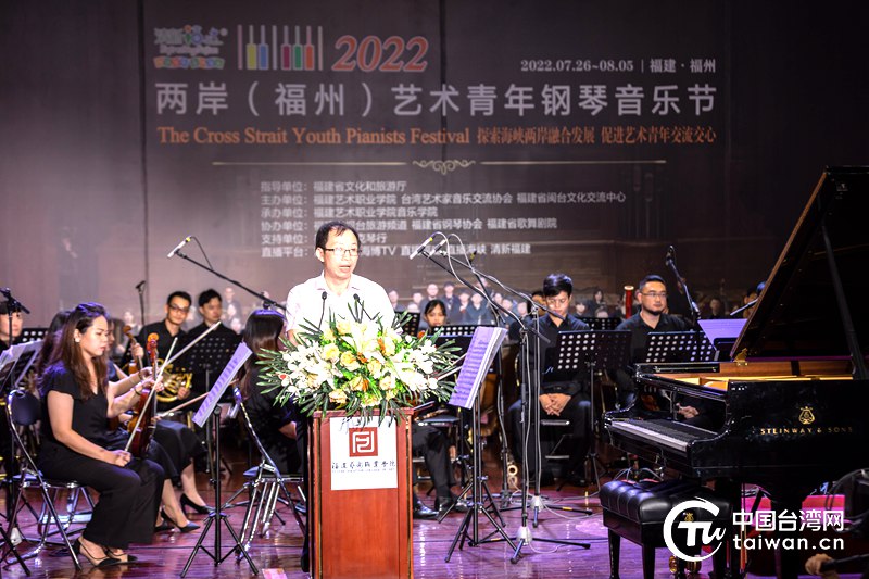 中国台湾网7月29日讯 7月28日晚,由福建省文化和旅游厅指导,福建艺术职业学院、台湾艺术家音乐交流协会、福建省闽台文化交流中心主办的2022年两岸(福州)艺术青年钢琴音乐节,在两岸钢琴音乐家悠扬的旋律中启幕。福建省文化和旅游厅副厅长肖长培、全国台湾同胞投资企业联谊会常务副会长李泓兰等嘉宾及两岸音乐节专家学者、音乐爱好者近200人出席开幕活动。肖长培、李泓兰等分别在开幕式上致辞。