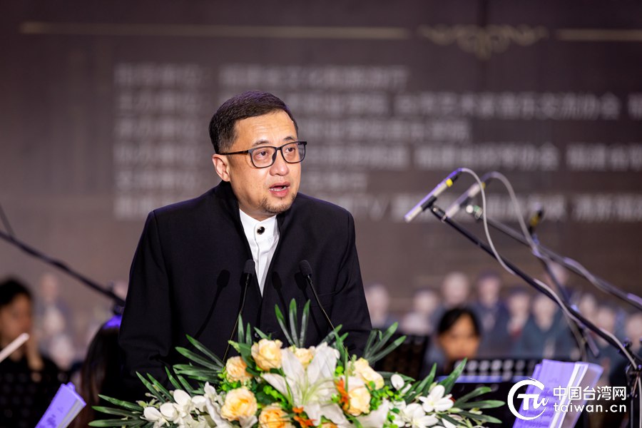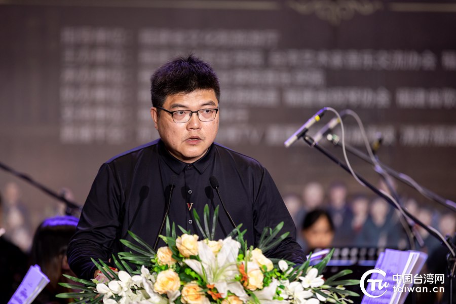 台湾艺术家音乐交流协会秘书长、两岸艺术青年联合交响乐团首席乐手刘融致辞(中国台湾网发)
