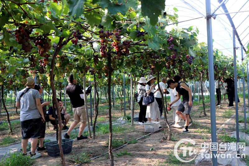 炎炎烈日下,汗流浃背的台青们举着手中的劳动成果兴奋地说“今天我们来到东洲,帮助当地农民朋友采摘葡萄,学到了很多知识,也真正了解了当地农民致富的秘诀。作为一名台湾青年,我们感受到这里充满着创业的机遇,也许会成为我们施展才华的舞台。”