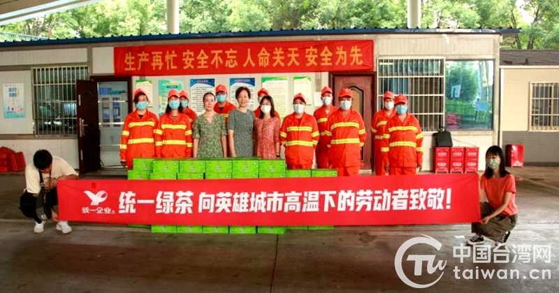 中国台湾网8月16日讯 酷暑时节,骄阳似火。近日,武汉市台办联合台资企业武汉统一食品有限公司,先后赴江岸、青山、硚口、东西湖区慰问高温下保障城市运行的交通民警、环卫工人,并送去防暑降温物资600余箱。