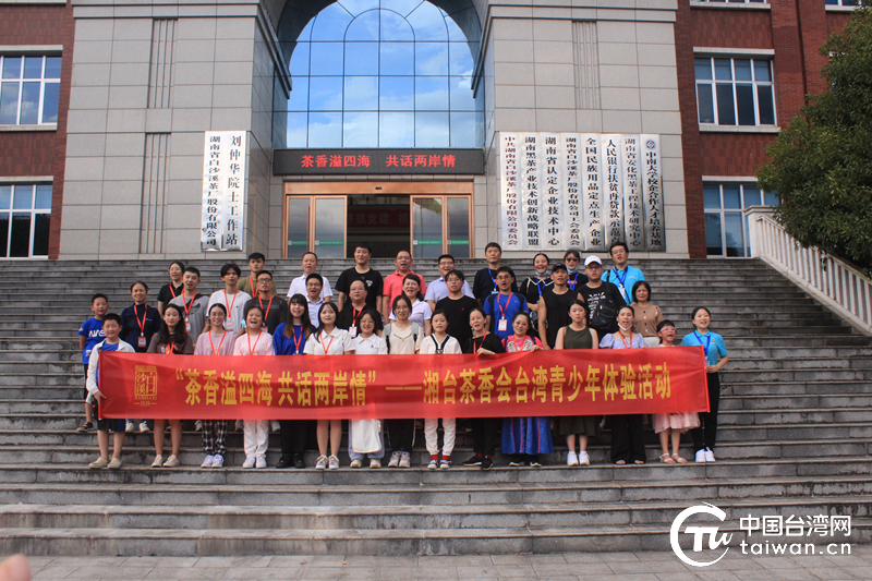 两岸青少年参加“茶香溢四海 共话两岸情”——湘台茶香会台湾青少年体验活动并合影留念。(中国台湾网发)