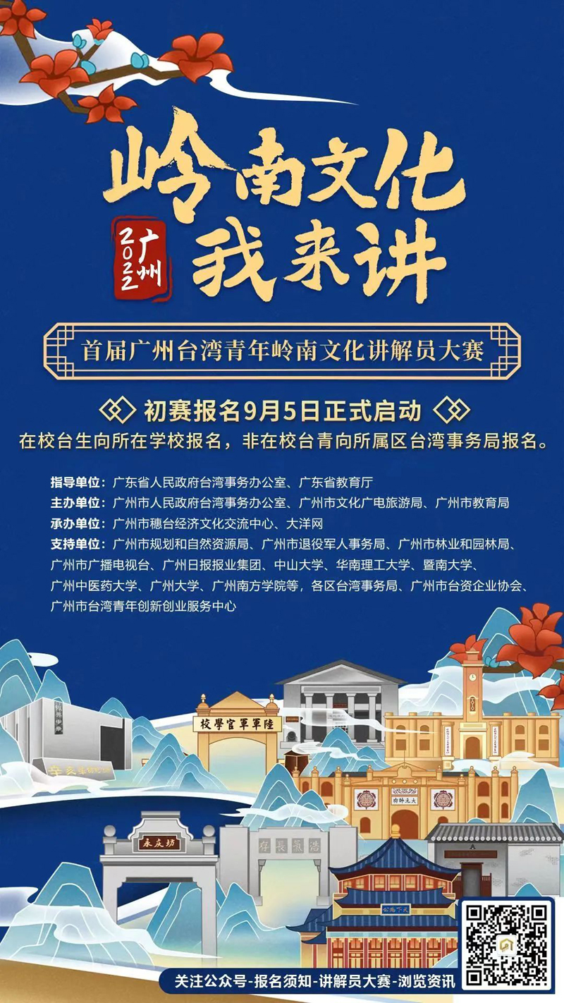 首届广州台湾青年岭南文化讲解员大赛将于9月5日启动