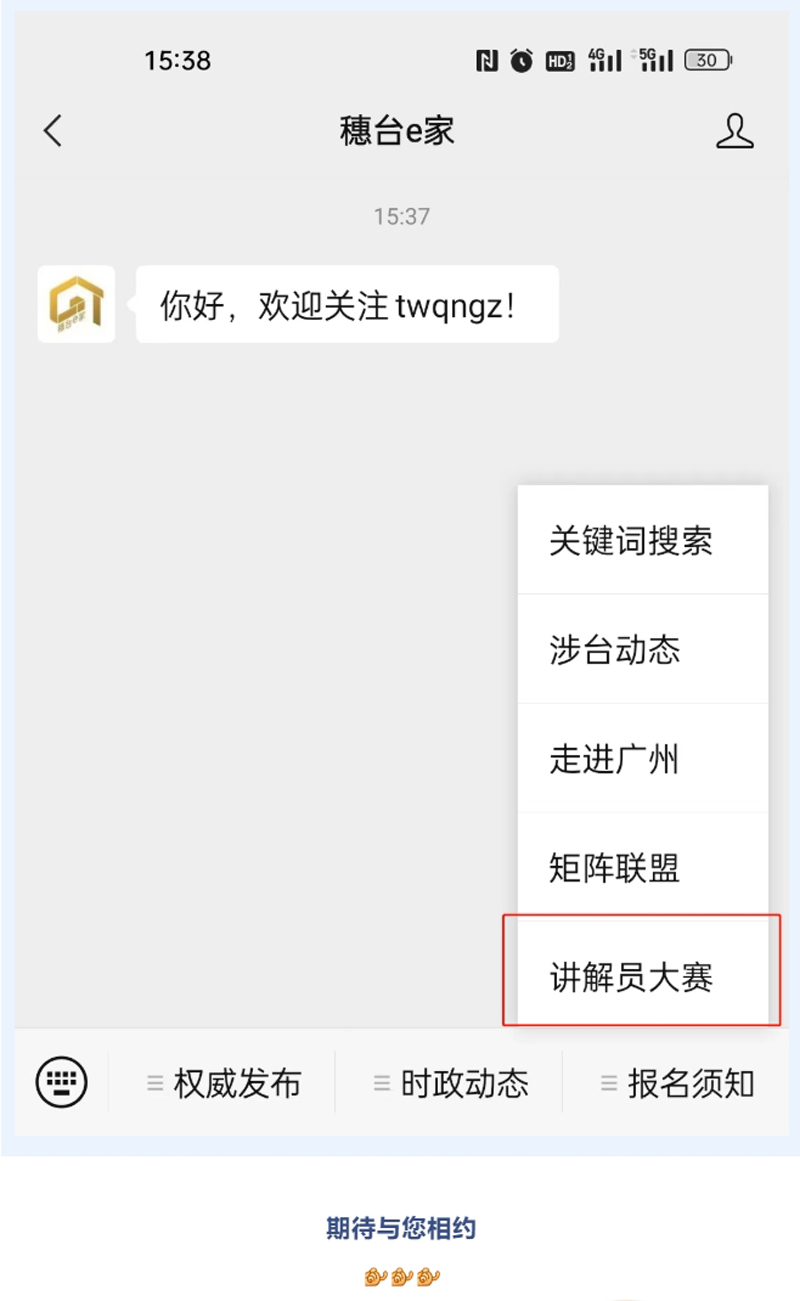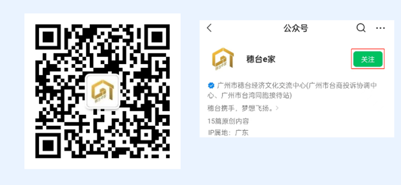 ①扫描下方二维码并关注“穗台e家”微信公众号;