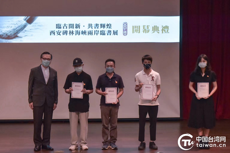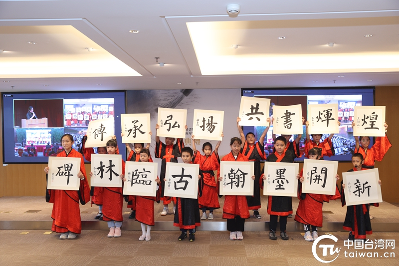 开幕式上,主办方为获得书法作品一、二、三等奖的台湾获奖代表颁发了获奖证书。来自中国宋庆龄青少年科技文化交流中心书法班的小朋友还在北京会场向两岸嘉宾展示他们书写的16字书法作品——“碑林临古,翰墨开新,传承弘扬,共书辉煌”,赢得两岸嘉宾的热烈掌声和一致赞叹。