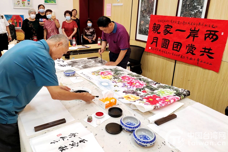 沙画、剪纸、面塑表演,表演者用精湛的手法勾勒出嫦娥奔月、玉兔抱月的神话故事。书画交流现场墨香阵阵,一笔一划,描画出中秋节日盛景,为两岸书画家增进了解、融洽感情、弘扬民族传统文化架起一座桥梁。剪纸、捏面塑表演则极具民俗特色,传递着淳朴的乡情。