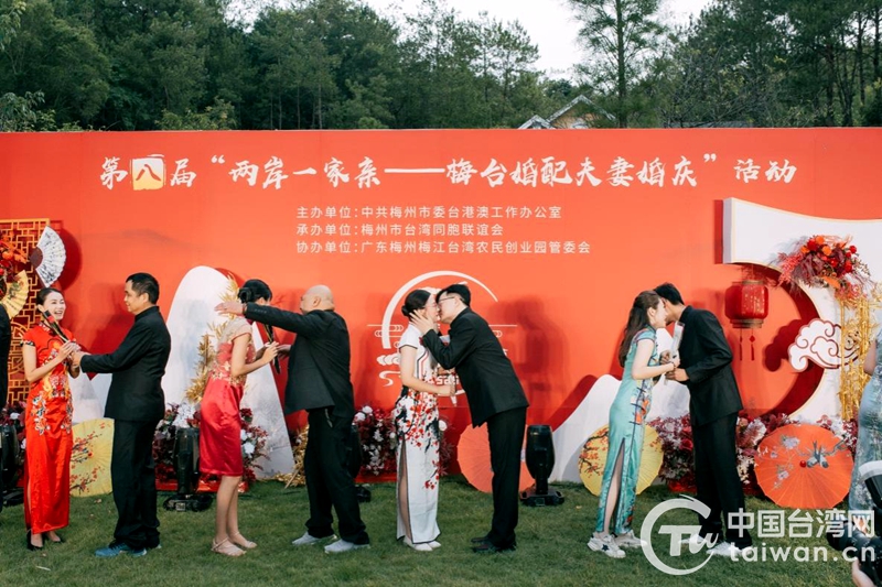 中国台湾网9月8日讯 近日,第八届“两岸一家亲——梅台婚配夫妻婚庆活动”在广东梅州举行,梅台婚配夫妻代表、部分在梅台两地分居台胞台商、梅州市台联会代表等近50人参与了此次活动。