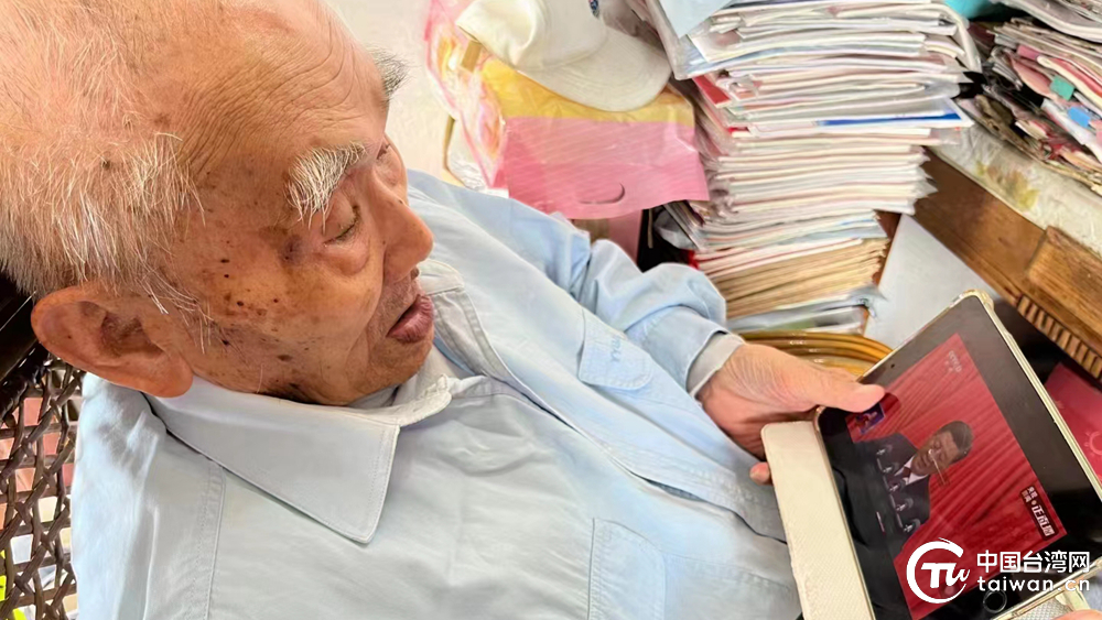 宁波97岁台湾省籍同胞尤锟铻坚持全程观看开幕会。(中国台湾网发)