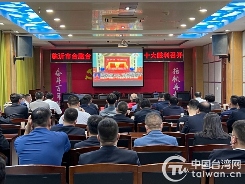 临沂市台港澳同胞、台资企业、台属企业代表收听收看二十大开幕会(图片来源:山东省台港澳办)