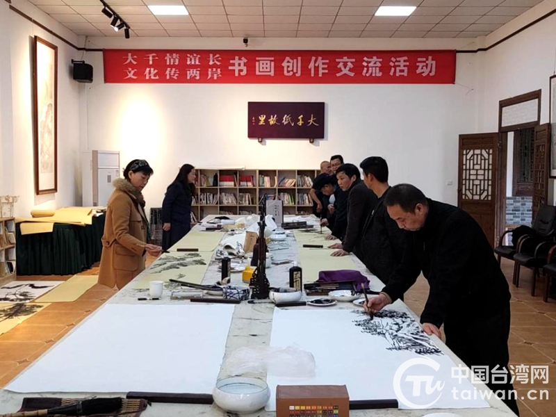 中国台湾网10月20日讯 近日,以“大千情谊长,文化传两岸”为主题的两岸书画创作民间交流活动在四川省夹江县举行。来自宝岛台湾的书画家徐乙泽一行与夹江书画家以丹青为媒介、以书画为桥梁,通过面对面书画创作,共叙两岸情缘。