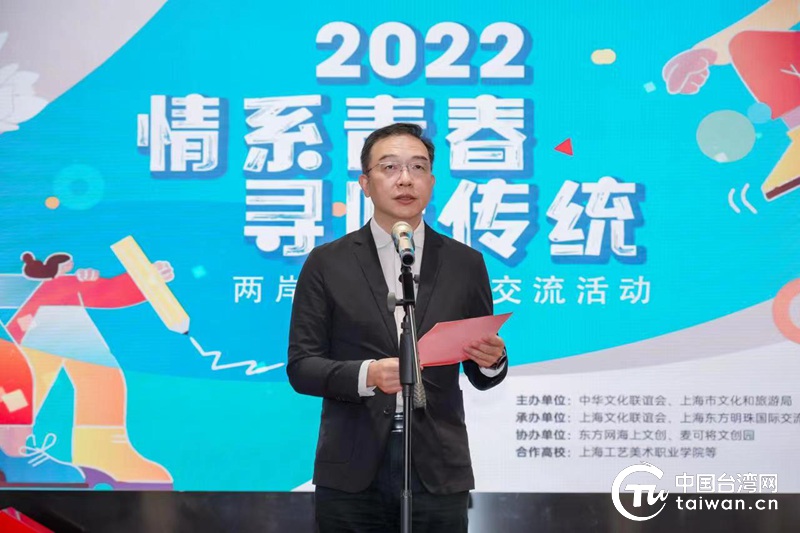 中国台湾网10月31日上海讯 (记者 李莉莉 王昱) 10月30日下午,由中华文化联谊会、上海市文化和旅游局共同主办的2022“情系青春·寻味传统”两岸青年文旅交流活动启动仪式在世博国际文化交流中心举行。上海市文化和旅游局副局长金雷、上海市人民政府台湾事务办公室副主任阳礼华等活动主、协办单位代表,以及来自复旦大学、上海交通大学、上海大学、上海工艺美术职业学院、上海戏剧学院、上海师范大学等高校的两岸青年、指导老师等应邀出席了启动仪式。