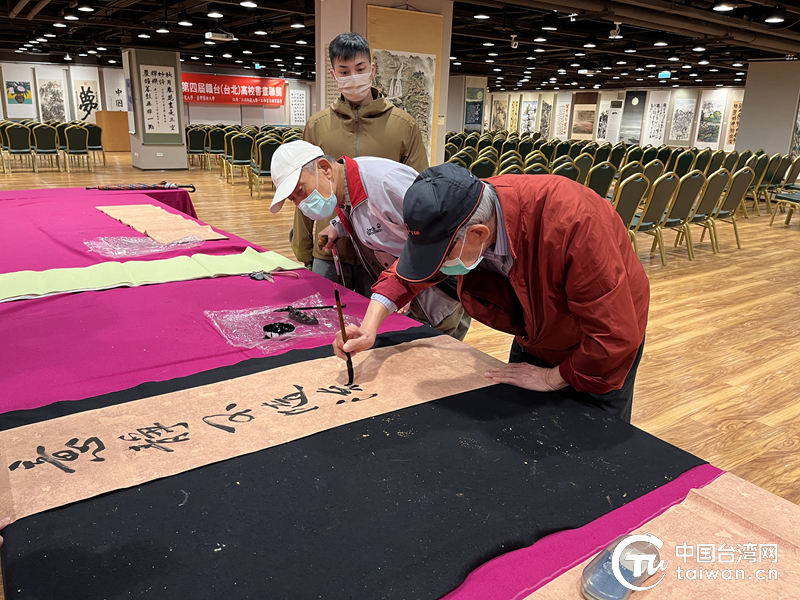 活动现场,书法家们泼墨挥毫。(中国台湾网 发)