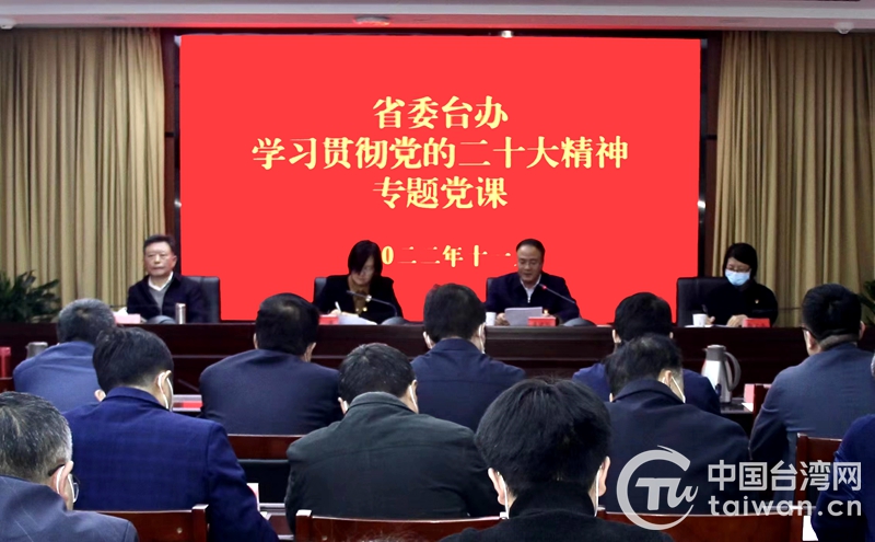 中国台湾网11月7日讯 近日,山西省委台办召开全体党员干部大会,集中学习贯彻党的二十大精神,山西省委台办主任李建红作宣讲辅导并讲专题党课。