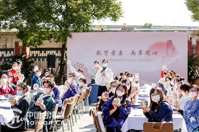 中国台湾网11月10日讯 “敬贤孝亲、两岸同心”2022年黄浦区两岸非遗文化展示活动近日在上海三山会馆举行。来自两岸的青年和在沪台商共同体验了一场文化盛宴,通过妈祖祈福仪式、昆曲欣赏、茶艺展示及非遗手工制作,感受非遗文化的独特魅力。