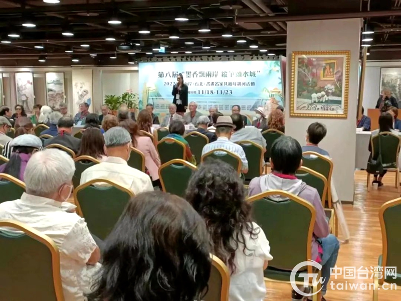 中国台湾网11月23日讯 第八届“墨香飘两岸 纵笔颂水城”2022海峡两岸(聊城)书画名家共绘母亲河书画精品台北展近日在台北张荣发文教基金会国际会展开幕。台湾书画家和各界人士120余人参加开幕仪式。