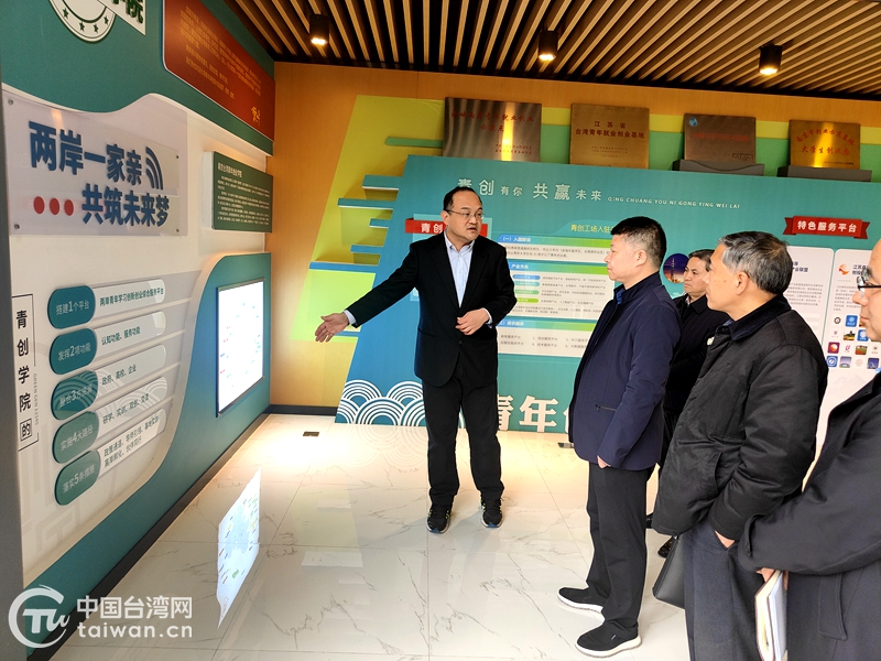 在海峡两岸青年就业创业示范点——南京台湾青年创业学院、江苏省对台交流基地牛首山文化旅游区,胡启书听取了学院和基地在制度机制建设、活动开展等方面的情况介绍。