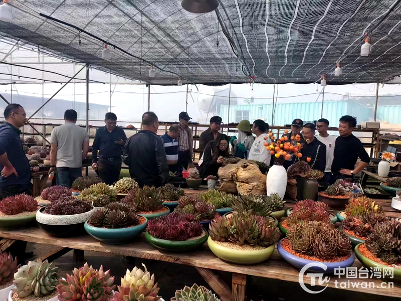 在大石板多肉花卉产业园玉溪云耕农业有限公司考察(图片来源:玉溪市台办)