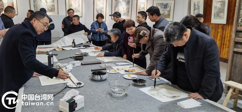 浦江书画家、台胞台属零距离交流书画创作。(中国台湾网 发)