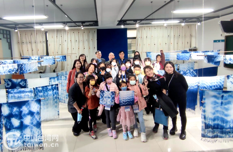 非遗制作蓝白之美 台湾小学师生在无锡体验蓝印花布扎染技艺