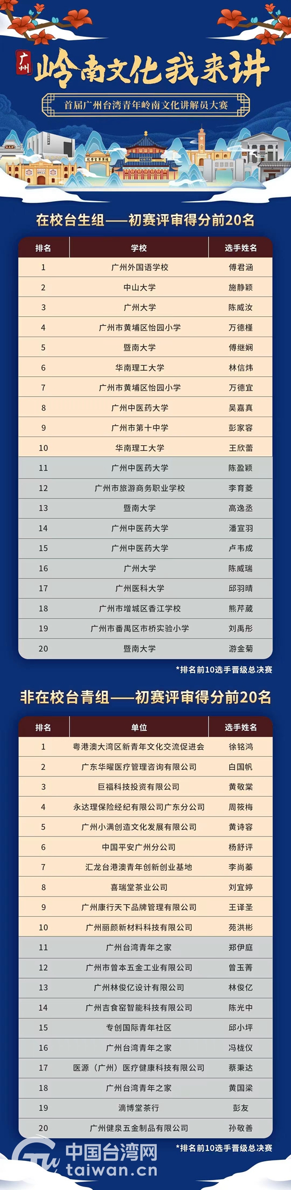 首届广州台湾青年岭南文化讲解员大赛总决赛晋级名单出炉!
