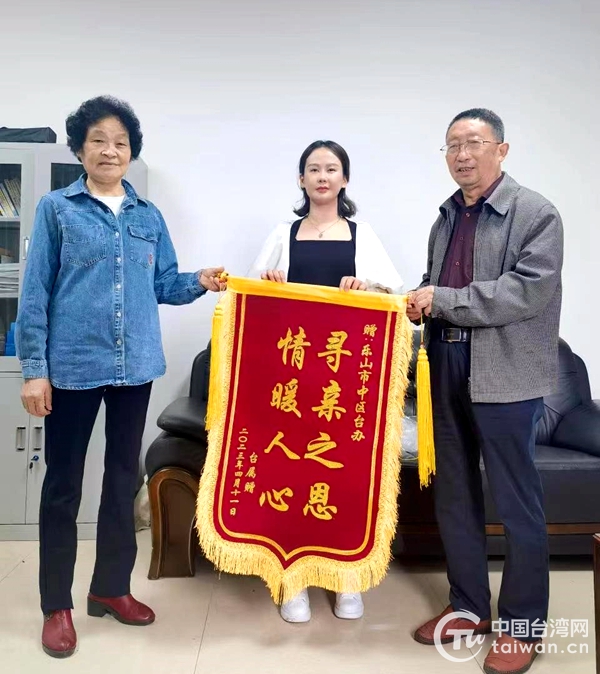 中国台湾网4月27日讯 近日,一位年逾古稀的老人在家人陪同下来到四川乐山市市中区台办,将一面印有“寻亲之恩 情暖人心”的锦旗送到工作人员手中。她激动地表示,全家人心中多年的牵挂终于“落了地”。