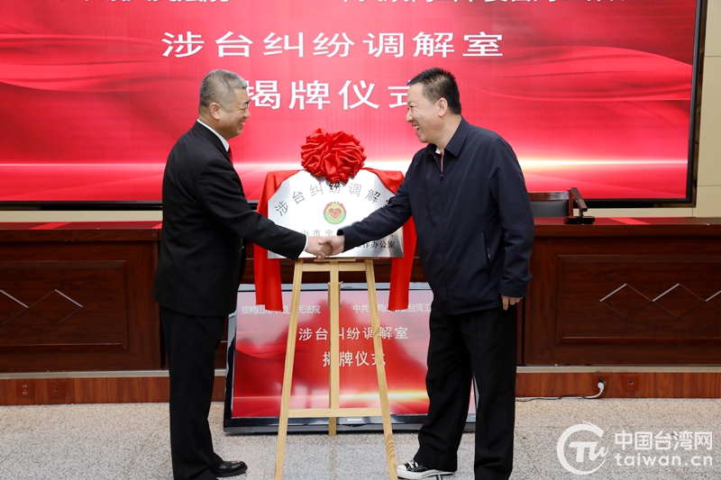 中国台湾网5月16日讯 近日,黑龙江省双鸭山市“涉台纠纷调解室”正式挂牌成立。揭牌仪式后,双鸭山市委台办和市中院工作人员前往友谊县法院,对一起涉台纠纷进行调解。