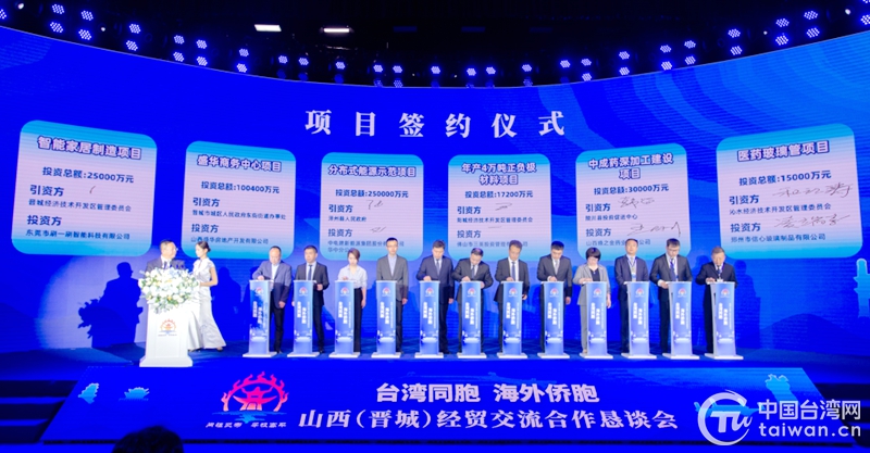 中国台湾网5月30日讯 山西(晋城)经贸交流合作恳谈会近日在山西晋城召开。会上签约项目30个,投资总额108.64亿元。
