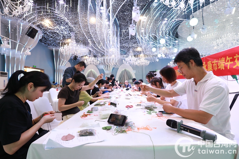 中国台湾网6月12日讯 “五色新丝缠角粽。金盘送。生绡画扇盘双凤。正是浴兰时节动。萬蒲酒美清尊共。”近日,永康市50余名台胞台属欢聚一堂,一起包粽子、做香包,共同庆祝端午传统佳节。