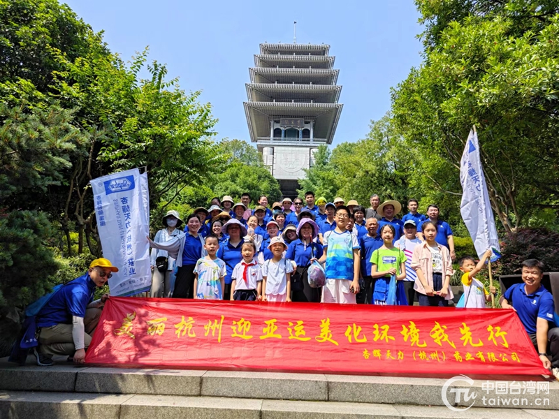 中国台湾网6月15日讯 近日,在杭台企杏辉天力(杭州)药业有限公司开展了以“美丽杭州迎亚运 美化环境我先行”为主题的亲子净山活动,公司员工及临平区部分台商台胞台属近50人参加。
