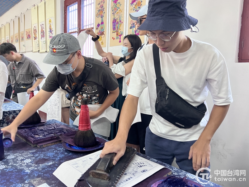 台湾学生体验年画拓印(图片来源:青岛市台港澳办)
