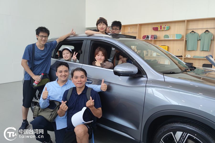 台湾青年们于新能源汽车中心体验电动汽车。(中国台湾网 高嘉鸿 摄)