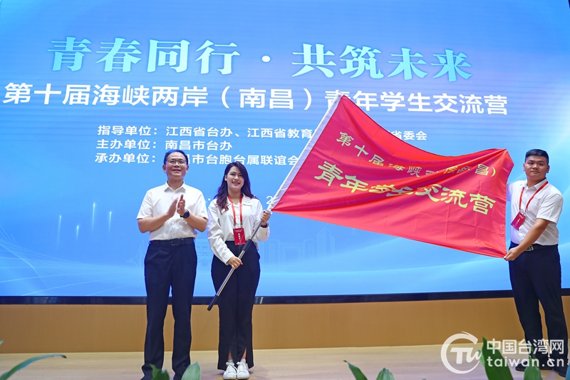 中国台湾网8月18日讯 近日,第十届海峡两岸(南昌)青年学生交流营开营仪式在南昌举行。江西省台办主任张锋向交流营授旗,南昌市委常委饶绍清宣布开营,省政协副秘书长、民革江西省委会专职副主委熊彤、省台办副主任沈兵秋、省教育厅二级巡视员雷杰华出席开营仪式。