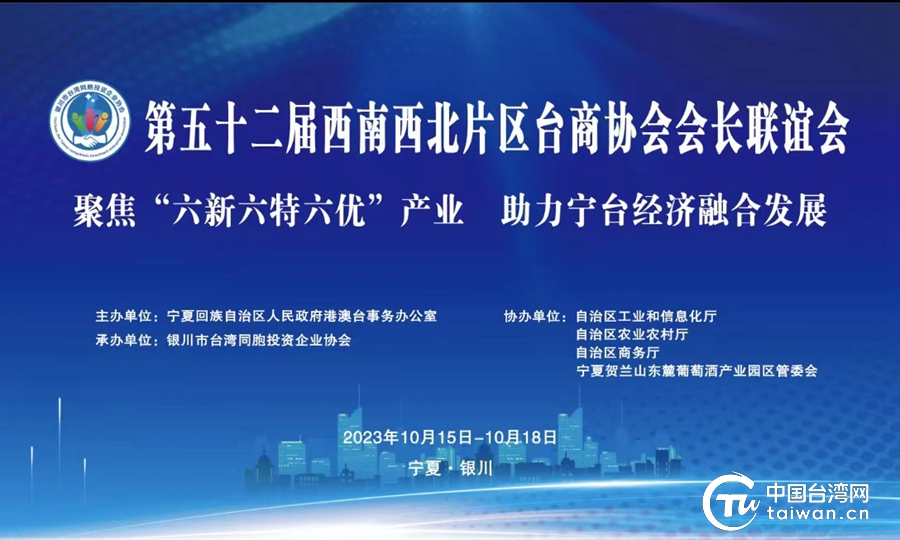 中国台湾网10月12日讯 第五十二届西南西北片区台商协会会长联谊会定于10月16日至17日在宁夏举办。届时,全国台企联会长、部分副会长及来自26个城市的60余位台协会长和台商代表等将出席会议,推动宁台经贸文化交流合作走深走实。