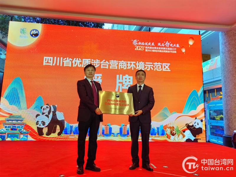 中国台湾网10月17日讯 在近日举办的台资企业发展交流温江行暨2023新光天地台湾美食节开幕式上,成都市温江区被四川省台办授予“四川省优质涉台营商环境建设示范区”。