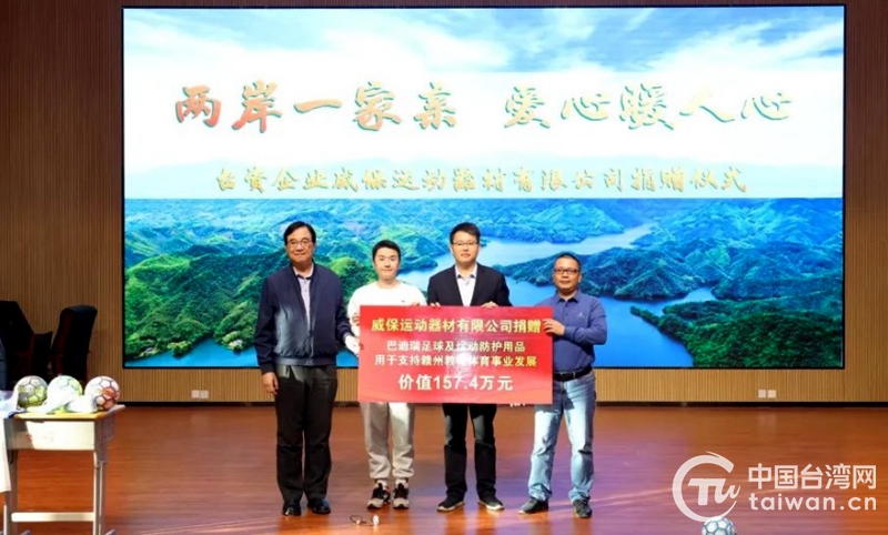 中国台湾网11月24日讯 近日,“两岸一家亲 爱心暖人心”台资企业威保运动器材有限公司捐赠仪式在江西理工大学附属金岭学校举行。