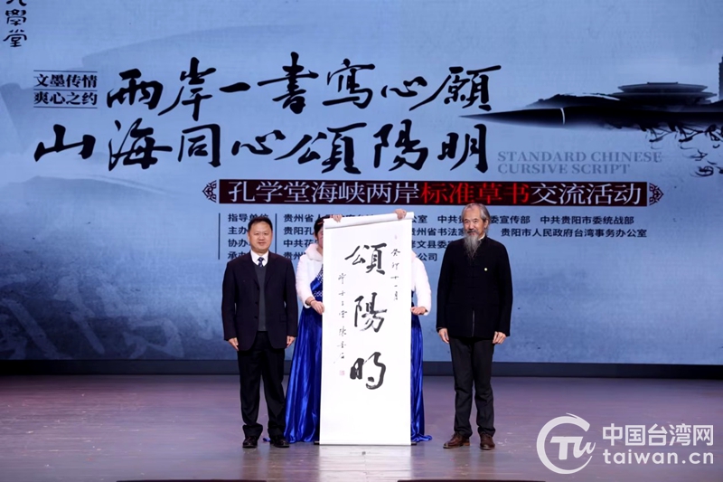 中国台湾网12月29日讯 两岸一书写心愿,山海同心颂阳明。近日,“文墨传情 爽心之约”孔学堂海峡两岸标准草书交流活动启动仪式在贵阳孔学堂举行。来自海峡两岸的文化学者围绕“传统书法的继承与现代创新”依次发言、交流书艺、形成共识。