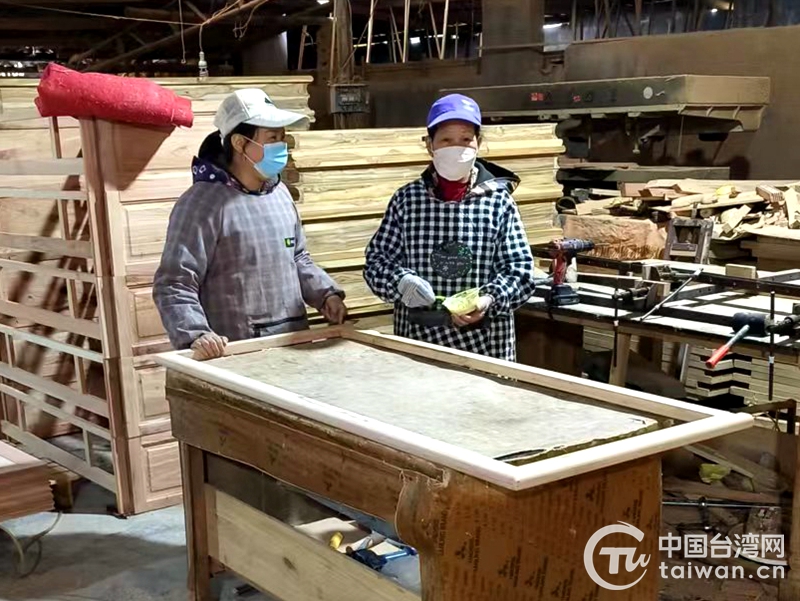 中国台湾网2月8日讯 厂房里,数十名工人忙着锯平原木、烘干木板、机房精切、拼板、砂光、安装、打磨、喷油、包装……这是河池市金城江区台办工作人员近日在台资企业广西河池市正兴木业有限责任公司生产线车间里看到的景象。