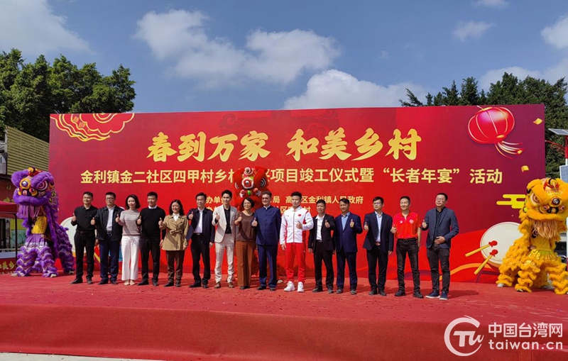 当天还举行了金二社区四甲村乡村振兴项目竣工仪式。肇庆市外事局局长邹小玲,高要区政府党组成员胡光曦,威泰集团副董事长、肇庆市台湾同胞投资企业协会常务副会长林世杰,威泰集团董事林小萍与金利镇金二社区及四甲村负责人共同为项目竣工暨“长者年宴”活动启动拉杆,并为新落成的“同心亭”揭幕。(中国台湾网、肇庆市台港澳事务局联合报道)