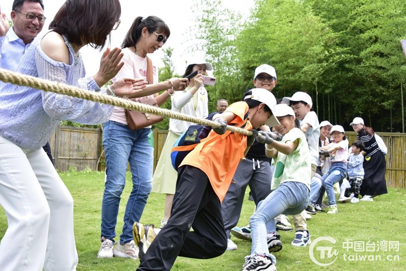 上午,两岸婚姻家庭成员在草地上举行了亲子互动拓展,相继进行拔河、丢沙包、找手手等童年游戏,现场活动氛围热烈,充满了欢声笑语。“拔河”最考验团队协作;“丢沙包”比拼的是家庭的默契度;“找手手”是让每位小朋友蒙起眼睛,通过触摸一双双大手来找到自己的妈妈,这可难坏了好多小朋友。