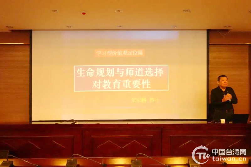 中国台湾网7月1日讯 日前,台湾中山大学张家麟博士应邀到丽江师范学院开展“生命规划与师道选择对教育的重要性”讲座,丽江师范学院文学与传媒学院160余名师生到场聆听。